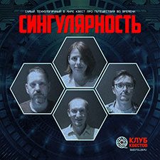 Прошли квест Сингулярность командой 2 взр+3 ребенка (13,12,10). 14.10.2017. Опыт хождения по квестам был только у одного человека. Всем оочень понравилось! Реально казалось, что не успеем в машину времени и она улетит без нас. Мамы бежали вперед забывая детей))) Спасибо организаторам, что контролируете зависание тупенькой команды , игра не теряет динамичности. Респект В.И.К.Е.! Когда сели в машину и включили навигатор, было полное ощущение что мы продолжаем миссию. Всем советуем пройти! А оргам новых идей и воплощений!